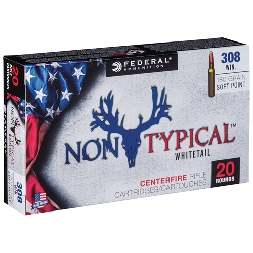 offers the following information: Federal Non-Typical ammunition offers shooters force and accuracy unmatched by any other bullet in its class. This Federal Non-Typical 308 Winchester ammunition is loaded with a 180 Grain Soft Point bullet. This high-grade ammo is designed to be the perfect option for whitetail deer hunting, or for any medium to large-sized game hunting. It boasts a concentric jacket that allows the bullet to pack a bigger punch, making it a consistently dependable deer hunting option that is exceptionally lethal. The Soft Point bullet is the perfect design for use in tubular magazines of your favorite 308 Winchester rifle. Federal Non-Typical ammunition has a muzzle velocity of 2820 feet per second and muzzle energy of 2648 foot-pounds, making this 150-grain soft point ammo the perfect choice for medium to large game hunting. Federal designed the Non-Typical 308 Win ammo to be new production, non-corrosive ammo that features brass cases and boxer primer which can be reloaded. Federal Non-Typical ammo is packaged in a box of 20 rounds or a case of 200 rounds for your convenience and is the perfect choice for an accurate and lethal shot! When it comes to hunting, Federal’s Non-Typical ammo has top-of-the-line technology that can be relied on to get the job done.