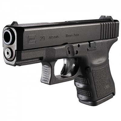 Superior versatility in the high-performance caliber 10mm with muzzle velocity approaching 1150 ft/sec. With reduced dimensions compared with the standard size GLOCK 20, the subcompact GLOCK 29SF is also suitable for concealed carry. In addition to the use as backup weapon for hunting, more and more security personnel on patrol duty appreciate the comfortable firing characteristics and the grip ergonomics of the GLOCK 29SF with a standard magazine capacity of 10 rounds.